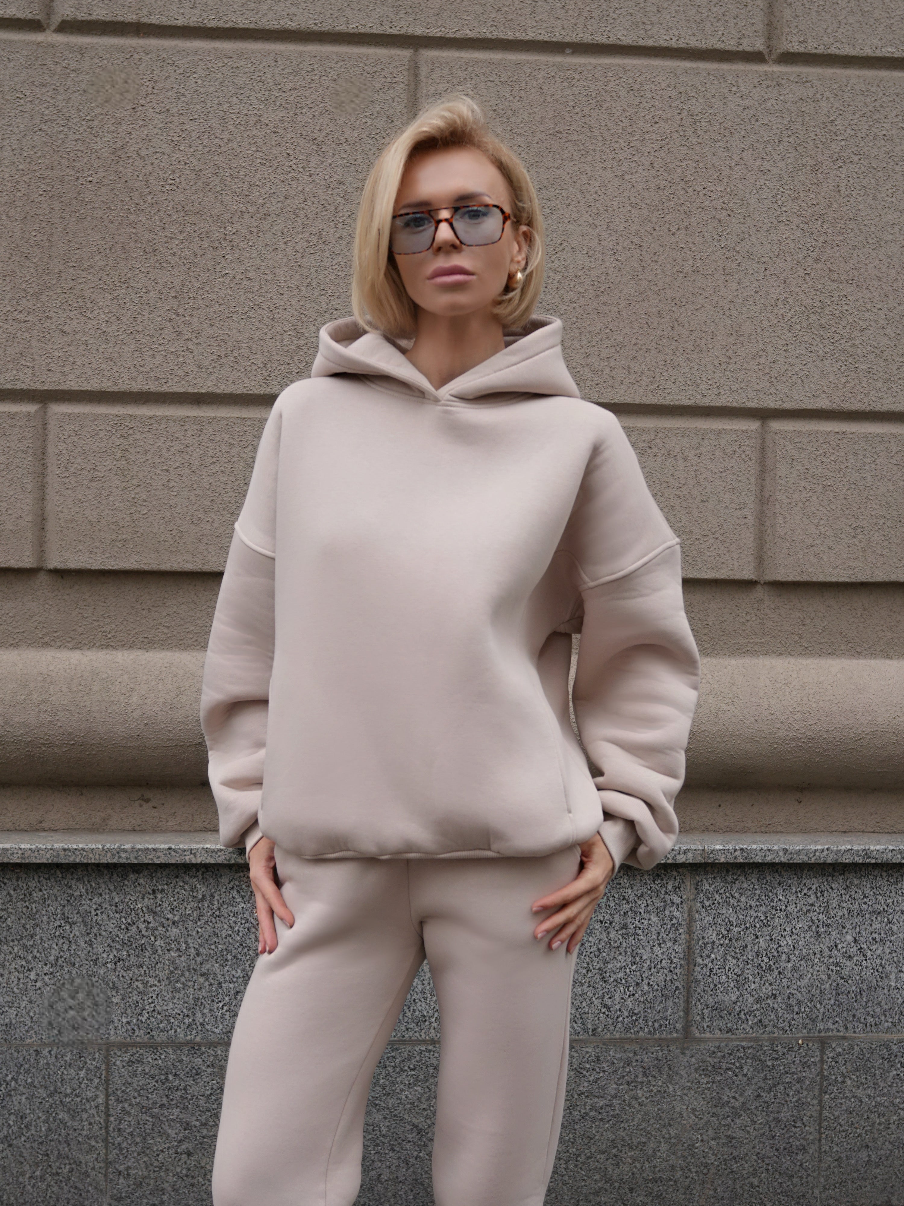 Stay warm and effortless in this premium fleece-lined set. The dense cotton blend with a soft brushed interior makes it ideal for cool mornings and winter layering.